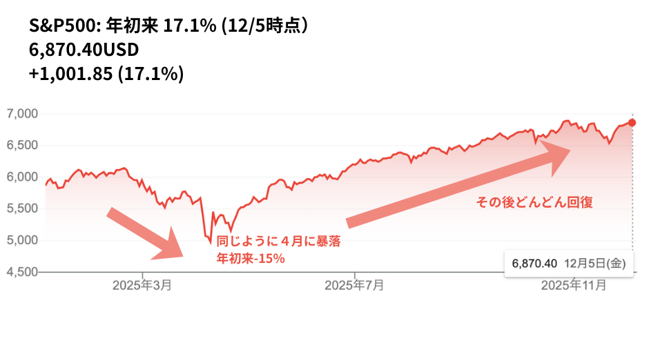 4月にドンと下がった時も、S&P500より大きく下げましたし、その後の回復もS&P500よりも大きく戻しました。